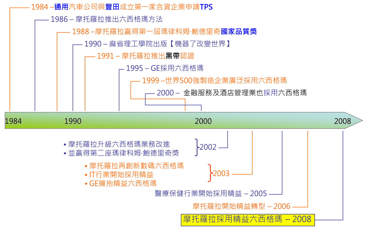 当六西格玛被企业完全吸纳并上升为公司政策之后,它不再单单意指产品的质量,而是一整套系统的企业管理理论和实践方法。随着六西格玛应用于摩托罗拉的管理实践所取得的丰硕成果,六西格玛开始受到业界人士的广泛注意。 但是,对六西格玛最有作为的,还得首推韦尔奇和他的通用电气(GE)。