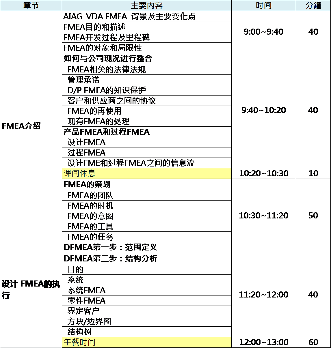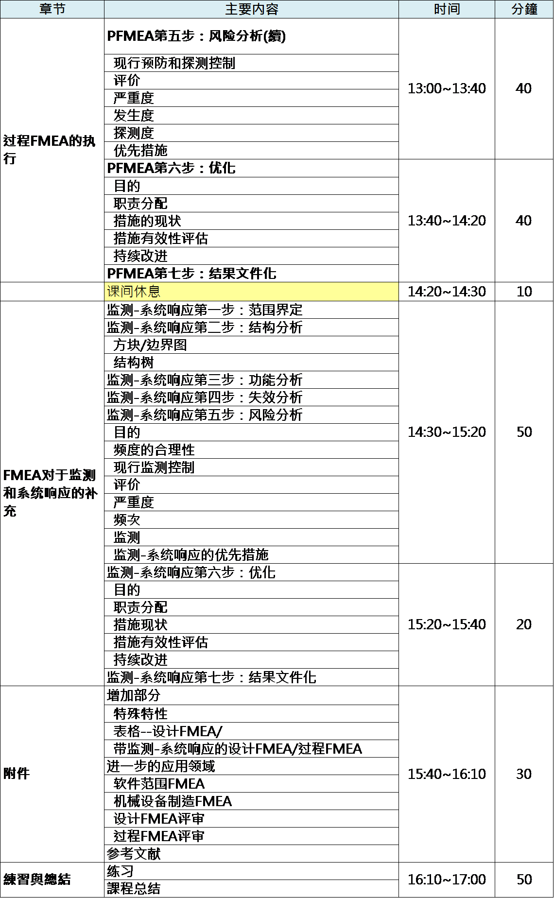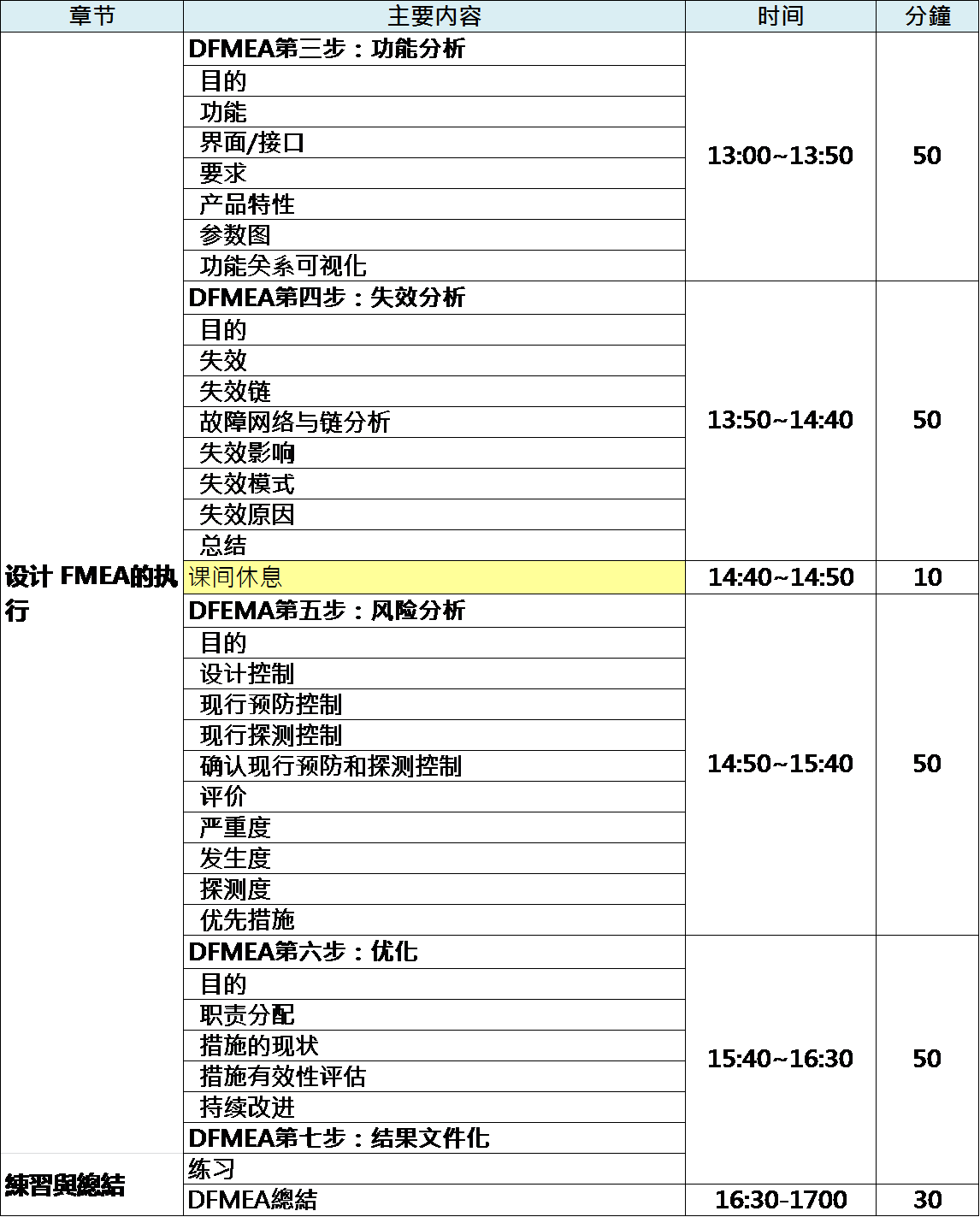 课程大纲 (DFME & PFMEA各一天,共兩天)