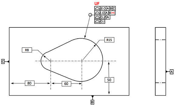 f) 非对称轮廓度符号(欧美差异)